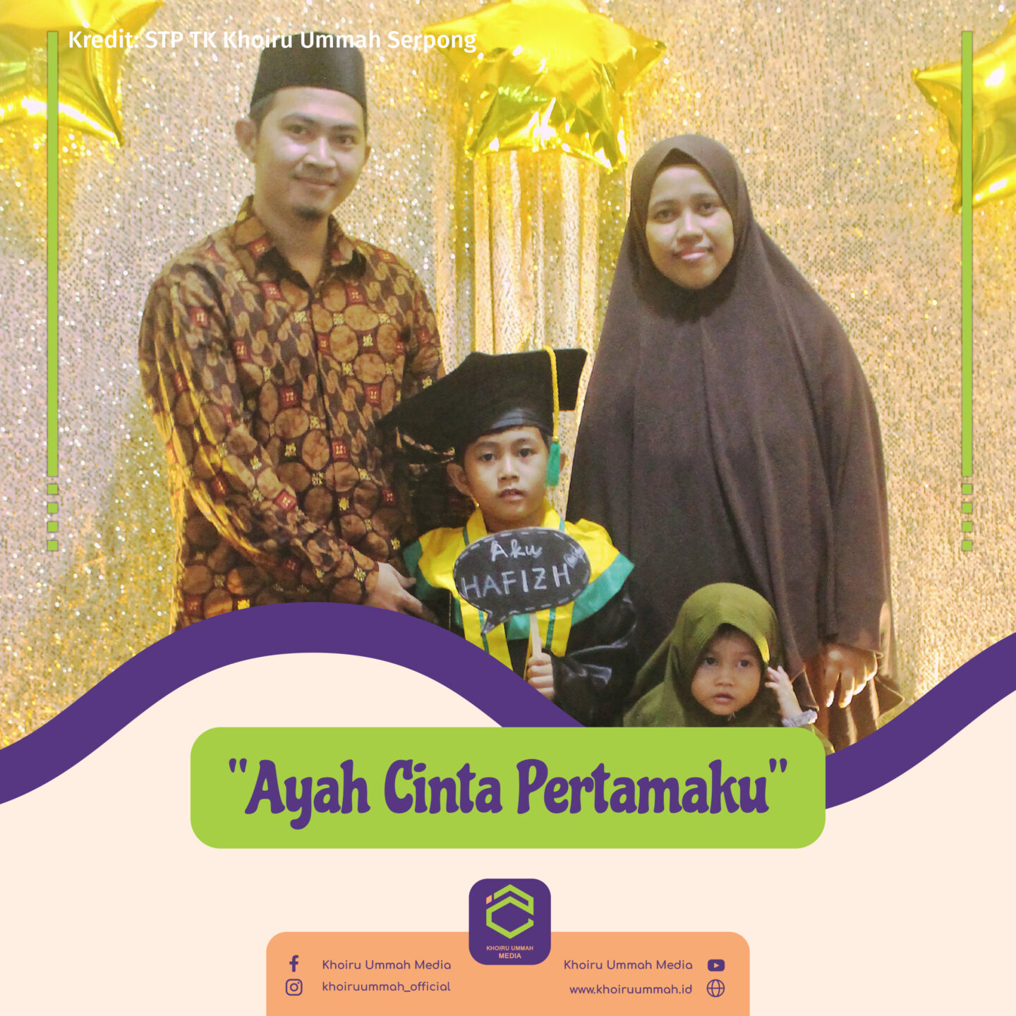 Belum lagi tanggung jawab nafkah yang ada di pundak ayah, semakin menambah besar porsi perannya dalam keluarga. Maka tak heran jika ayah sangat layak untuk dijadikan cinta pertama anak-anak dalam hal teladan dan kasih sayang. Teruntuk para ayah, jazaakumullah khayran katsiran atas segala hal yang diberikan untuk anak-anak dan keluarga.