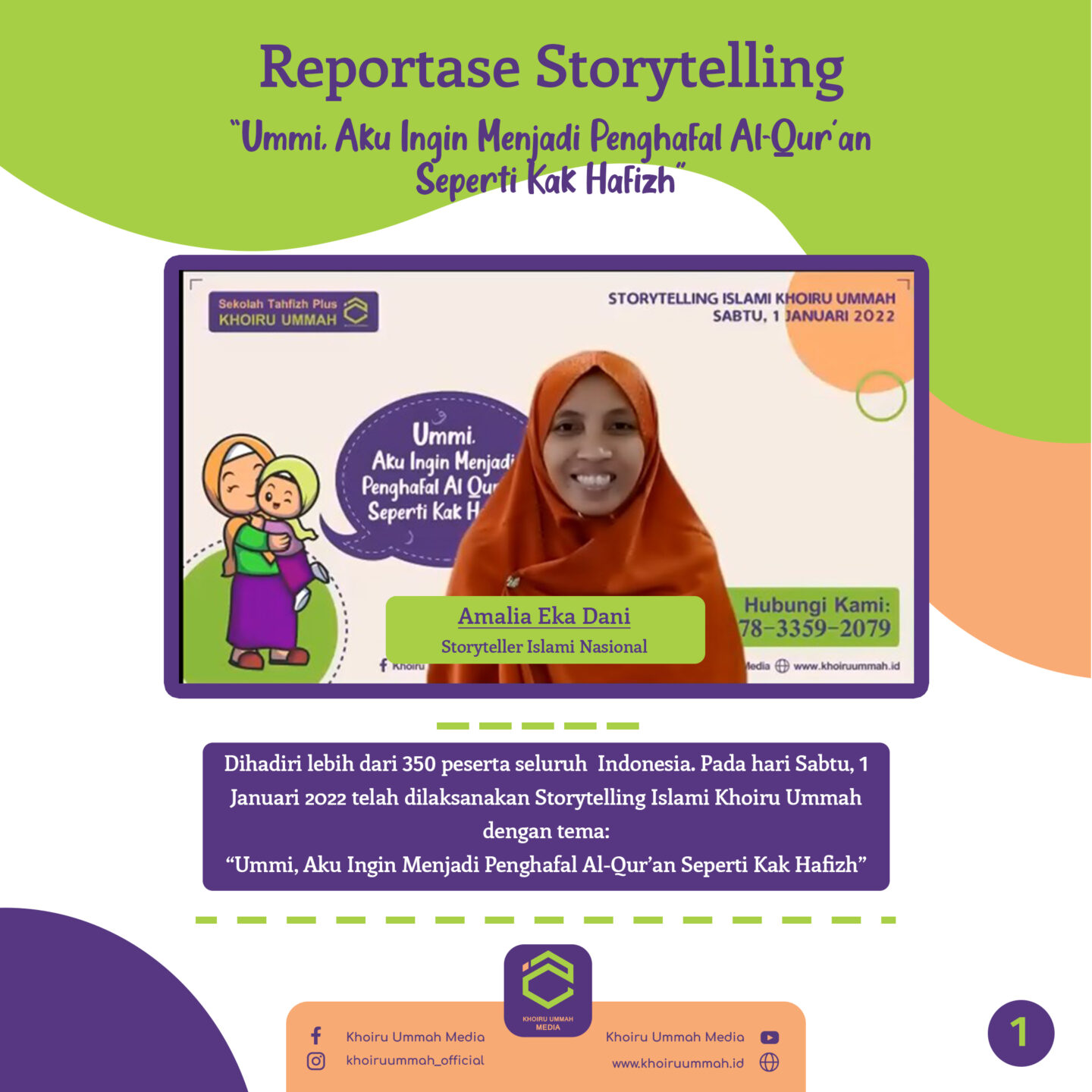 “Ummi, Aku Ingin Menjadi Penghafal Al-Qur’an Seperti Kak Hafidz” menjadi judul acara story telling Khoiru Ummah yang digelar pada hari sabtu, 1 Januari 2022.