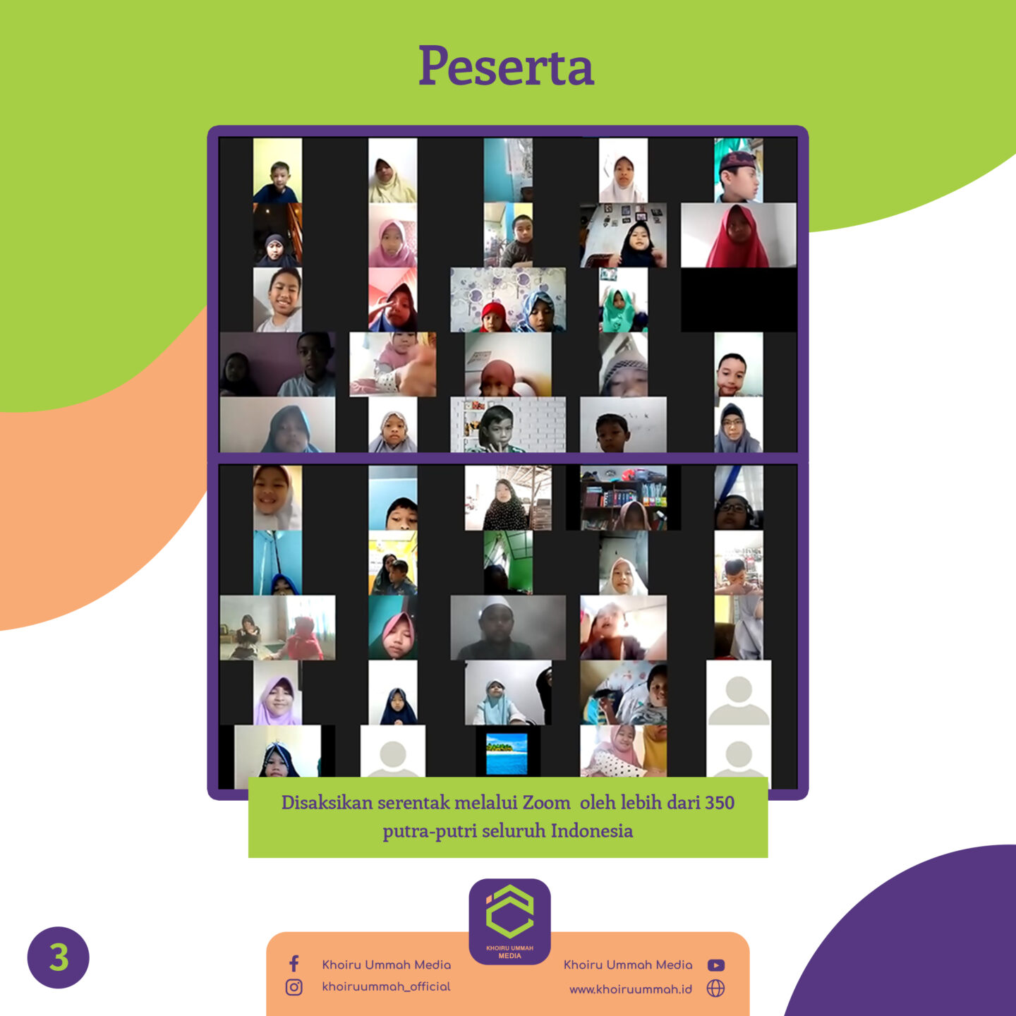 Acara yang dipandu oleh kak Rinka Rima ini disimak oleh 350 peserta di ruang zoom yang berasal dari seluruh penjuru Indonesia. Para peserta pada acara story telling ini sangat spesial lho. Mereka adalah ananda shalih dan shalihah yang semangat ingin menjadi penghafal Al-Qur’an. Maasya Allah!