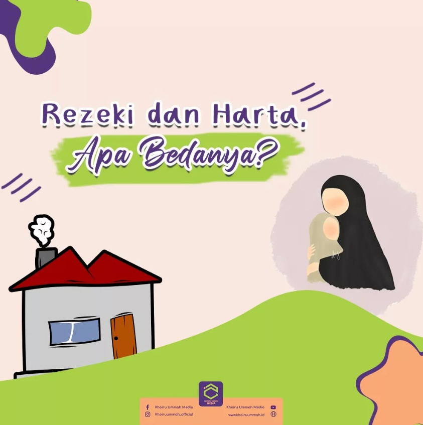 Ya, rezeki dan harta berbeda. Rezeki mencakup beberapa bentuk yang jauh lebih tinggi, utama, dan sempurna dibanding rezeki dalam bentuk harta, yaitu kesehatan, anak-anak yang sholeh, dan ridho Allah SWT.