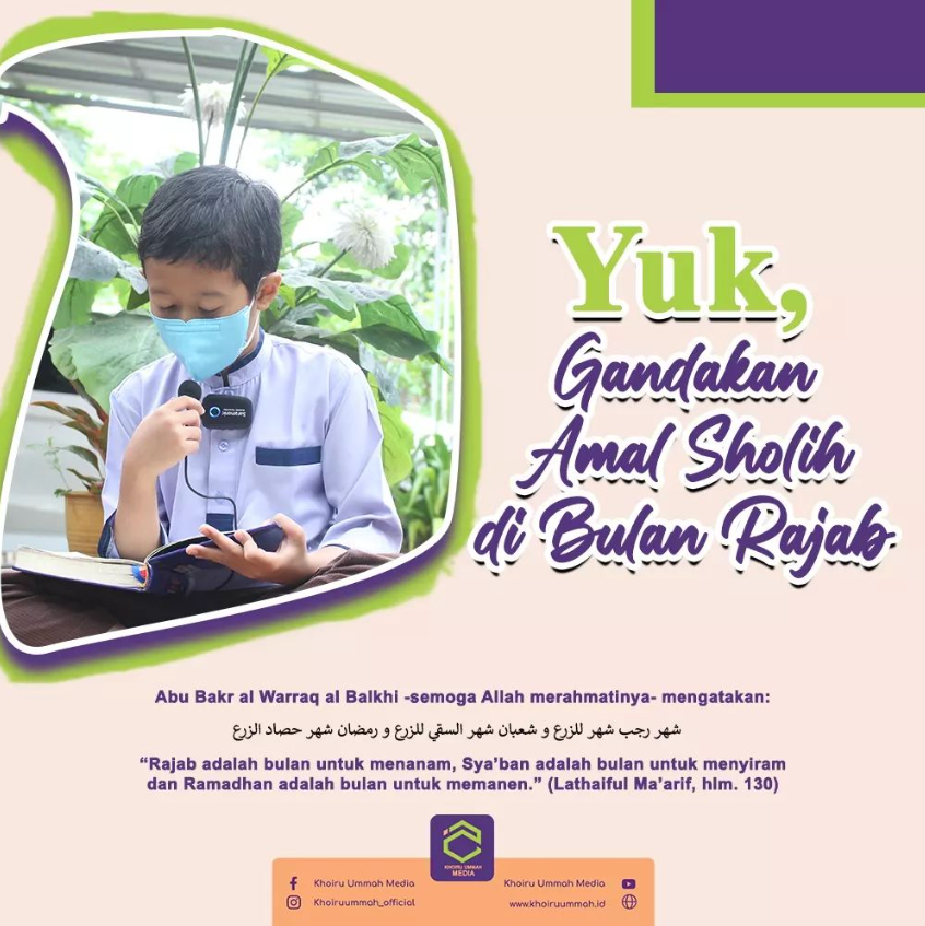 Karena itu ananda shalih dan shalihah, mari kita contoh para ‘Ulama dalam menyambut datangnya bulan Rajab. Apalagi jika bukan dengan mempersiapkan sebaik-baiknya amalan dan melipatgandakannya di bulan Rajab ini.